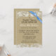 Floral lace design and blue bow over a burlap look background. Personalise with bride to be's name as well as her future groom. All parts of this bridal shower invitation are printed, there is no real burlap, lace or ribbon attached.