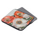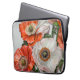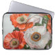 Protect your laptop in style with this elegant and artistic laptop case. The design features a stunning arrangement of vivid poppies in bold red, coral, and white tones, accented by flowing green leaves and delicate details. Subtle simulated metallic highlights add a touch of sophistication to the artwork, creating a timeless yet modern aesthetic.