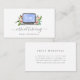 Beautiful design for teachers and educators specialising in virtual tutoring, remote learning, or online instruction features a watercolor laptop computer illustration flanked by bouquets of blush pink peony flowers. Customise the front with two lines of text in handwritten script and classic serif lettering, and add your initials or monogram to the light blue laptop screen. Add your contact information to the reverse side.