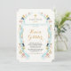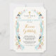 Beautiful meadow-inspired invitation with a frame made up of blue laurels, pink wildflowers and gold accents. The delicate hand painted sprigs surround your text announcing your special Confirmation day- with a cross at the top of the frame. In beautiful blues, pinks, golds and browns with black watercolor wash on the reverse side.