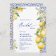 Floral Lemon Mediterranean Blue Tile Bridal Shower Invitation
