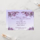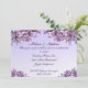Lilacs are the theme of this wedding reception invitation. The front features pink and mauve lilac sprays on a purple background. The back has more lilacs. All text can be customised to suit your needs.