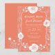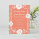 Simple, artistic floral design with white flowers on a salmon coloured background.