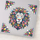 Experience the majestic silhouette of a lion adorned with vibrant floral prints set against a pristine white background. This captivating artwork blends the regal aura of the lion with the beauty of blooming flowers.