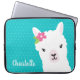 This cute llama laptop sleeve makes a great gift for a little girl. Design features a white llama illustration, pink flower and teal polka dot background. Easily personalize this custom name!