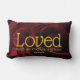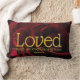 Stylish red rose floral lumbar pillow with LOVED WITH AN EVERLASTING LOVE in gold typography, which is based on Jeremiah 31. This Bible reference is CUSTOMIZABLE so you can add your name or create your own text. A lovely gift for Valentine's Day, birthdays, wedding anniversaries, Christmas or throughout the year.