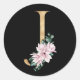 Floral magnolia monogram in gold letter J Classic Round Sticker