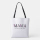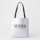 This is a simple yet beautiful tote bag to celebrate being a mother. The design features the word "MAMA" in a floral text, with customisable text below. Personalise tote bag by adding the name or names of the children, to make a great Mother's Day, birthday or Christmas gift.
