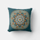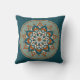 This throw pillow features a floral mandala medallion in teal, olive, rust and cream.