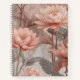 This elegant notebook cover features a beautiful and intricate floral pattern, reminiscent of a serene garden. Large, stylised blossoms in soft blush and earthy nutmeg tones are set against a subtle, muted background. Delicate stems and leaves in shades of grey and warm taupe fill the space, creating a lush, meadow-like feel. The overall design is sophisticated and calming, perfect for adding a touch of nature-inspired beauty to your school, work, or personal notes.