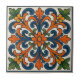 Bring vibrant energy to your space with this eye-catching decorative tile. Bold cobalt blue scrolls and rich orange foliage intricately intertwine around a cheerful central flower, accented by fresh green leaves and bright yellow corner blossoms. Framed by a slim blue border, this tile is perfect for adding a lively and artistic touch to any interior. This piece features a symmetrical, medallion-like design, where graceful cobalt blue scrolls meet with vibrant orange acanthus leaves, all centred around a delightful orange bloom. Lush green leaves in the outer corners and cheerful yellow flowers add a refreshing natural element. Reminiscent of classic Italian or Spanish hand-painted ceramics, this tile is ideal for creating stunning backsplashes, unique accent walls, or adding a touch of natural beauty to your kitchen, bathroom, or living area. This versatile tile is an excellent choice for adding personality, a Mediterranean flair, and a lively pop of colour to any design scheme, whether for a full wall, a creative border, or as an individual artistic accent.