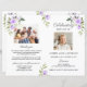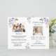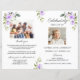 Order of Service Memorial Funeral Photo Program. It features soft watercolor purple flowers and leaves, one photo on the front and a family photo on the back, on a white background. Use Personalise tool to add your info and add in a easy way your photos. For matching items, please, visit my Celebration of Life Sympathy Thank You Collection.
