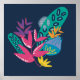 Simple blue floral illustration art poster with leaves, tropical flowers for home, bedroom, living room wall art decoration. Unique colorful Gift art idea for women birthdays, mothers birthdays, friends, who loves flowers, garden, botanical blue illustration, modern decoration for home. Modern navy blue artistic deco poster.