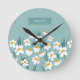 Floral modern daisy blue girly elegant stylish personalised clock design.