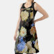 Dive into a timeless display of white roses and blue hydrangeas! This seamless black background is graced with watercolor elegance.