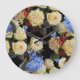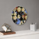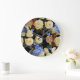 Floral modern pattern, white roses, blue hydrangea large clock