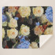 Floral modern pattern, white roses, blue hydrangea sherpa blanket