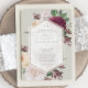 A romantic, vintage fall wedding invitation featuring beautiful botanicals and a modern geometric shape with rose gold frame and couple monogram.