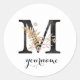 Floral Monogram M Black Gold Flora Classic Round Sticker