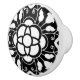 Knob in an Art Deco Moroccan tile pattern based on stylised flowers and leaves - black on a white background