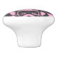 Knob in an Art Deco Moroccan tile pattern based on stylised flowers and leaves - fuchsia pink, silver grey / grey and soft pink, accented with white