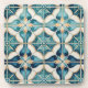 Floral Moroccan Tile Pattern#1 Teal White ID1078 Coaster