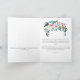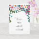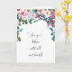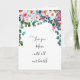 Floral header with colourful flowers, including lots of shades of pinks and greens to a light purplish blue. Quote on left inside and on right inside greeting message with a similar floral bouquet at top.