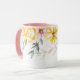 This floral mug has pretty pastel images of flowers around the top edge of the mug over a white background. Sample interior shown is pink. Choose your colour interior to suit your taste. Customise this mug or buy as designed.