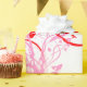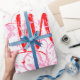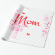 Elegant wrapping paper for mum's gifts. A pink floral art graphic design with red butterflies and the word MOM written in a red script font. Give mum her special Mother's Day gift, birthday gift, anniversary gift, Christmas gift wrapped in this beautiful wrapping paper made just for her.