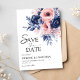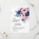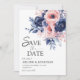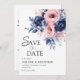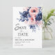 Floral Navy Blue Blush Pink Boho Elegant Wedding Save The Date