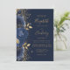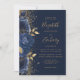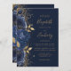 Floral Navy Blue Gold Glitter Wedding Invitation