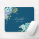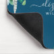 Floral Navy Blue Mint Foliage Botanical Script Mouse Pad