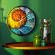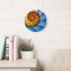 Floral Orange Yellow Blue Abstract Art Round Wall Clock