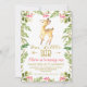 Sweet girl's our little deer birthday invitation featuring a watercolor foliage and pink berries arrangement around the edges of the invitation and a cute watercolor deer. I've also added a faux gold foil heading and arrow that is part of the image and can't be altered. The back of the invitation is a scanned pink watercolor wash and a white polka dot pattern. More little deer birthday invitations are available at the store. This girl's floral watercolor little deer birthday invitation is ready to be personalized and is ideal as a 1st birthday invitation.