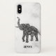 Modern dark grey and white floral paisley elephant on white marble stone texture. Optional monogram
