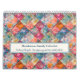 Sewing themed wall calendar featuring 12 months of patchwork quilt designs in vibrant coloured floral patterns.  Front cover design is personalised with your name and captioned "Our lives are like quilts – bits and pieces, joy and sorrow, stitched with love", which can be edited with your own text.