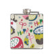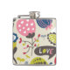 The flask itself is fine. It’s a cheap flask, obviously bought in bulk, however am prepared to overlook that. Given that it is a personalized item, I would have liked to have seen gift boxing instead of the generic packaging. Terrible printing, and/or quality. It’s a cheap, tacky vinyl. It is not cut straight and is also applied in a way that it is overhanging the bottom, causing the glue to catch on items and it will eventually roll and tear, damaging the wrap.