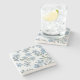 The coasters are gorgeous, a quality feel and heavy weight. They look like a precious archeological find. A rustic stone juxtaposed with a modern floral black and white print. I like the way the print goes slightly imperfect on the cut stone edges giving them a kind-of natural beauty.