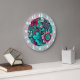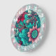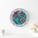 Floral Pattern, Aqua, Teal, Turquoise and Grey Large Clock