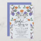 Floral Pattern Dusty Blue & Orange Bridal Shower Invitation