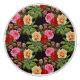Floral Pattern Flowers Roses Red Pink Yellow Green - This product boasts a beautiful floral pattern of Roses and buds of different colours surrounded by thick green foliage on black background.