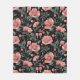 Floral Pattern Green Oak Leaves and Pink Flowers Fleece Blanket