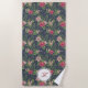 Beautiful floral pattern of Hibiscus on dark background. Sophisticated and feminine beach towel with monogram into white round shape. You can easily change text (font, colour, size and position) by clicking the customise button. Matching keychain, pillow, luggage, luggage tag and more...
