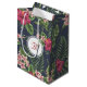 Beautiful floral pattern of Hibiscus on dark background. Sophisticated and feminine medium gift bag with monogram into white round shape. You can easily change text (font, colour, size and position) by clicking the customise button. Matching luggage, luggage tag and more...