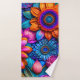 Wonderful colourful floral pattern in boho / hippie style! An eye-catcher for your bathroom, great bath towels. Also a wonderful gift! Colourful and happy design for everyone! Digital art / AI art by AIbyMarion.