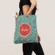 Floral Pattern in Teal and Orange and Red Monogram Tote Bag