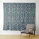 Floral pattern on green leaves blue background tapestry