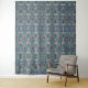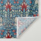Intricate floral pattern with red, cream, and green leaves on a blue background. Symmetrical design evokes a classic, elegant, and ornate feel.