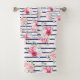 Floral Pattern on Horizontal Stripe Roses Peony Bath Towel Set