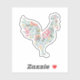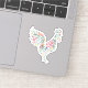 Pretty floral pattern rooster theme sticker decals decorated with a beautiful flower pattern in a cut out shape of a rooster farm animal.